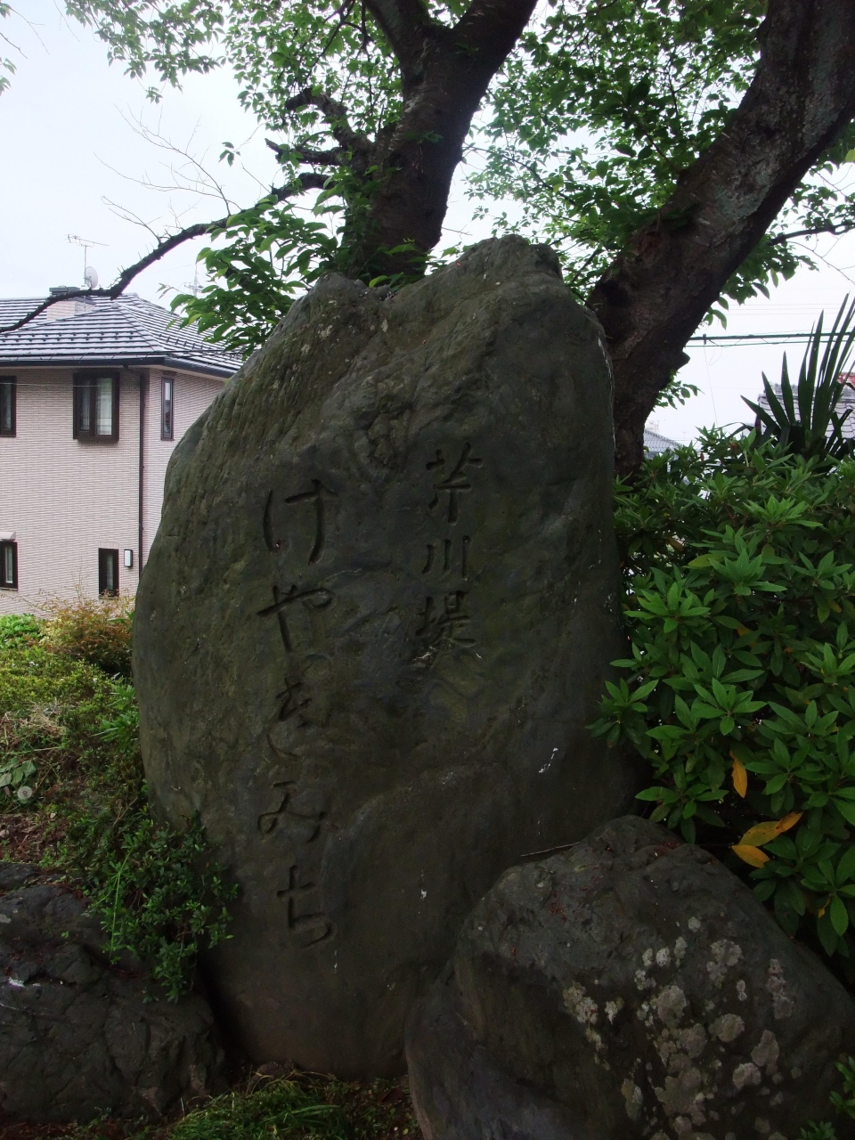 芹川の南側には遊歩道が整備され、桜も植えられ、四季を通じて楽しめるようになっています。石碑には、芹川十句が彫られています。