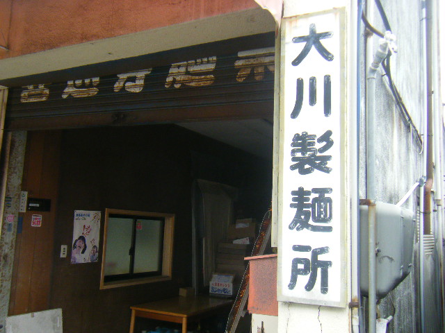 古びれた駅前商店街だった所に面していて、手前が食堂、奥が製麺所の工場です。