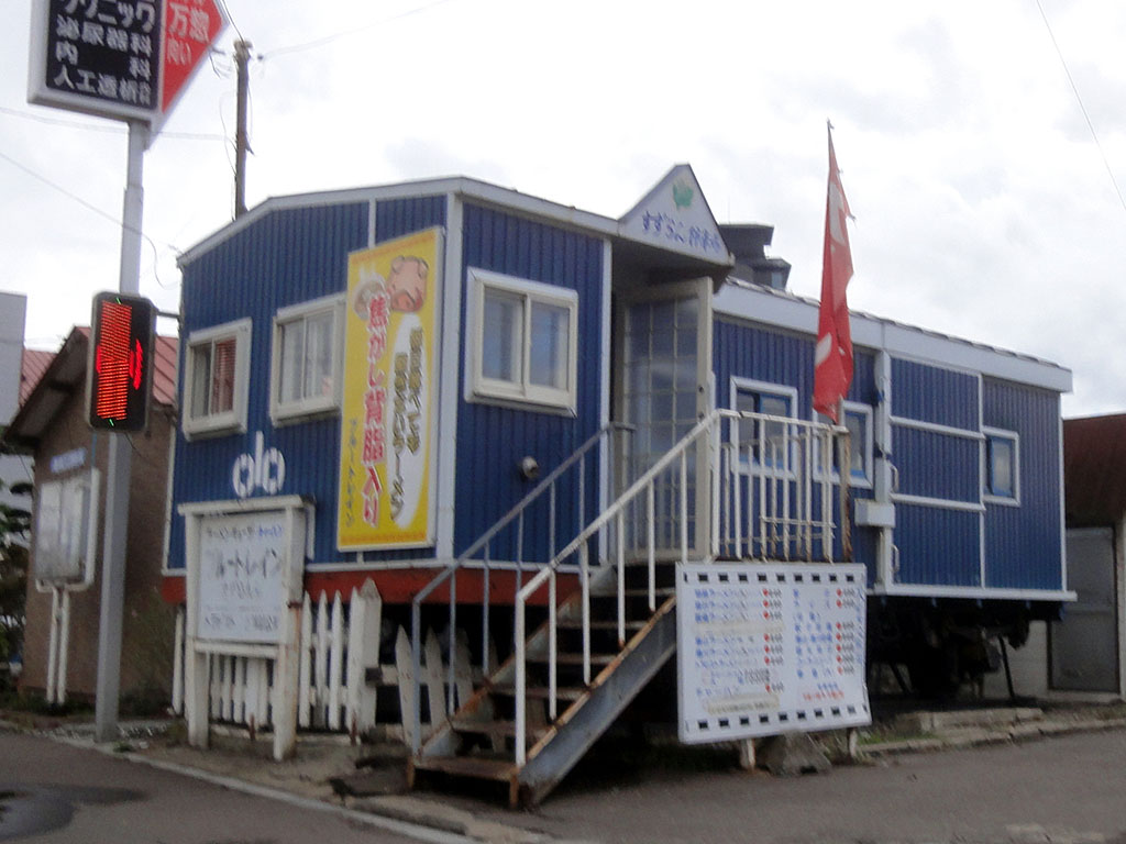 函館湯の川地区にあり、1両電車で営業しているブルートレイン。函館や観光客からも人気があり、たびたびメディアでも登場する。ここのラーメンは背脂のようなものが入っていて、好みが分かれる所もあるが、ファンは多い。