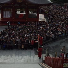 鎌倉で一番有名かつ入場無料、歴史的価値もあり駅からのアクセスも良好ということで常に混んでいます。特に1月上旬は元旦でなくても写真のような混雑。大勢の人が少しずつ歩くので砂ぼこりが舞います。マスクを忘れずに持って行きましょう。この写真は階段の上から撮ったものですが、年配の方は介添えの方がいないとこの階段を上がるのは難しいかもしれません。