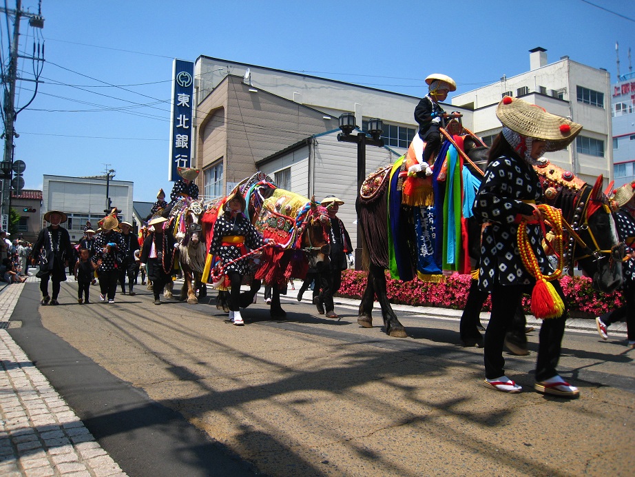 子供(たまに大人)を乗せた100頭もの馬が、滝沢村の蒼前神社から盛岡の八幡宮まで「チャグチャグ」と鈴を鳴らしながら練り歩きます。(私は盛岡駅から少し行ったところで見ました。)ちなみにこの鈴の音は「残したい”日本の音風景100選”」に選ばれています。