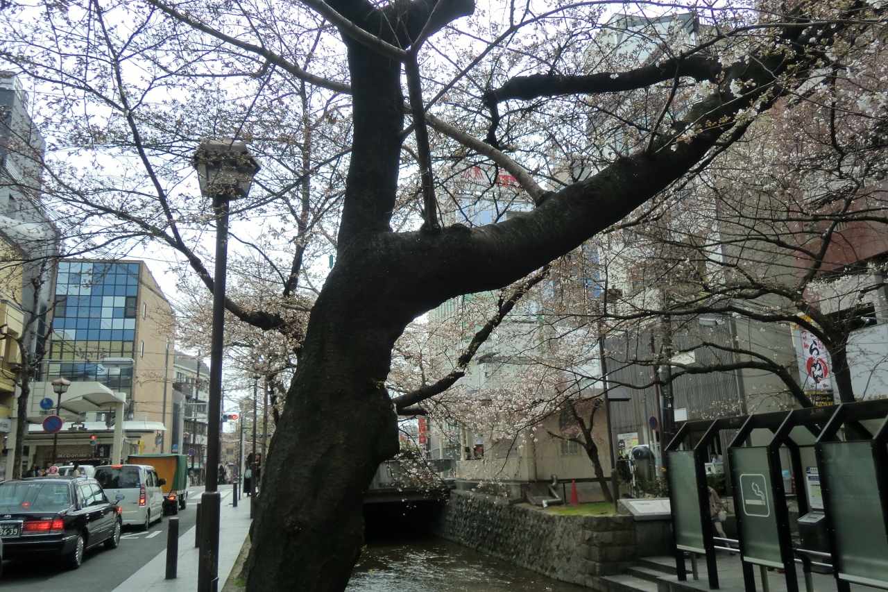鴨川をわたると京阪の祇園四条駅や南座がある、