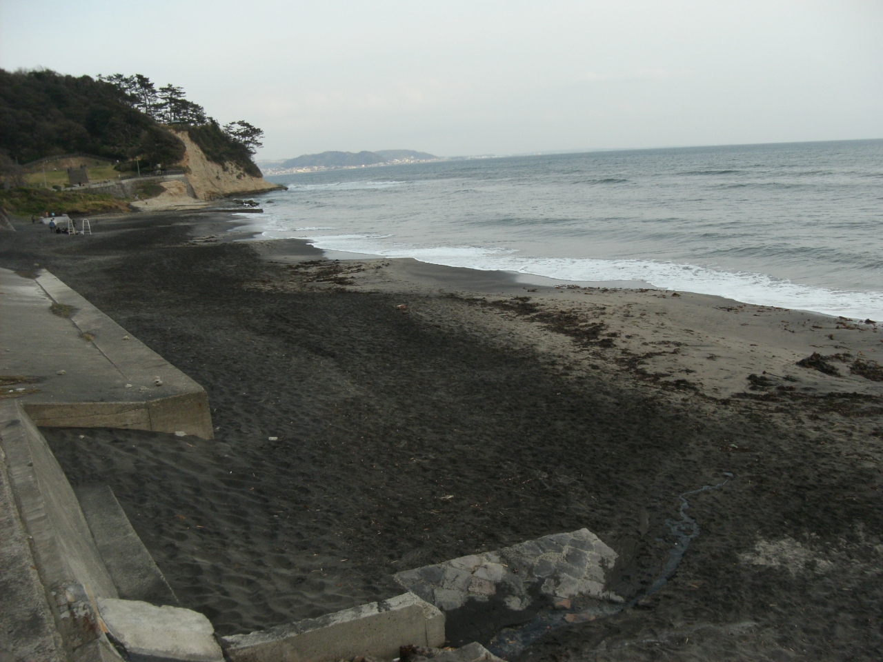 いまは砂浜は狭く、海水浴場には適しません(サーフィンのメッカといわれていますが)。砂が黒っぽくありませんか・・これ砂鉄?、地元の小学生に聞いてみてください。