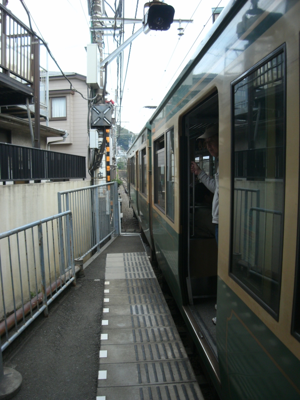 観光人気スポットの義経ゆかりの満福寺最寄駅。ホームが短いため下車の際は注意の案内が入ります(鎌倉行きの場合は先頭車両・逆は最後尾がホームから外れる)。
