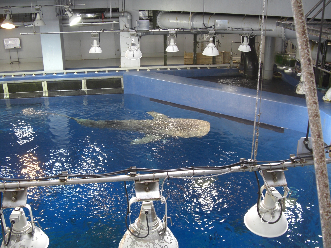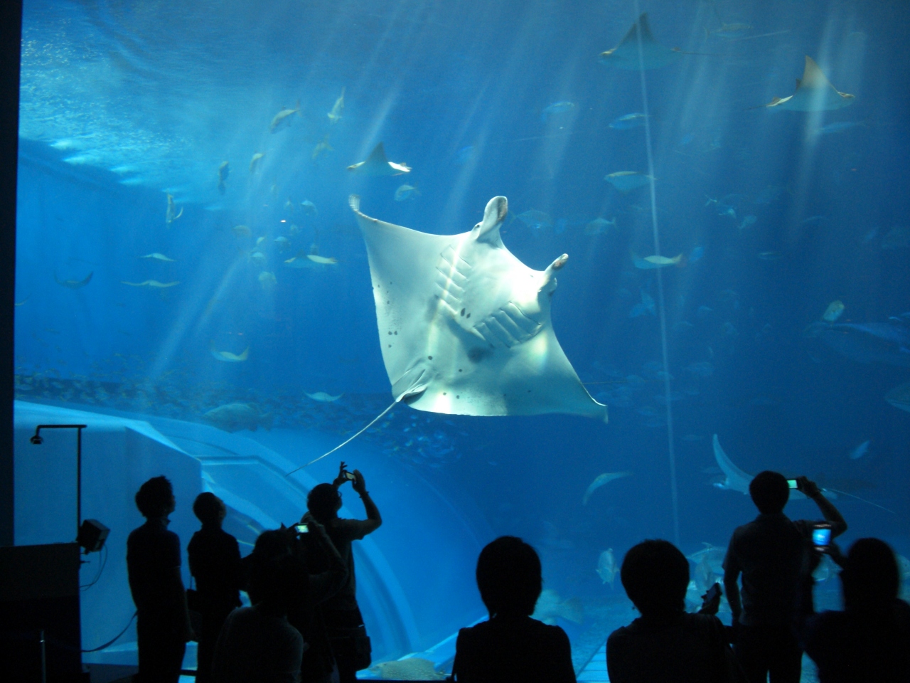 ジンベエザメに比べたら小さく見えても、幅 3~4mある、美ら海水族館のマンタ。