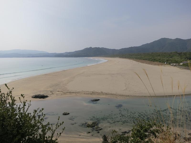 足摺宇和海国立公園の東端に位置しているそうで、1500mにも渡って砂浜が続いています。遠浅で波が静かで、昔から潮干狩りやキャンプ場として県民に親しまれてきた浜だそうです。サーフィンをしている人も大勢いました。