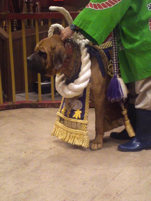 困り顔の横綱が重い装飾をつけて出て来ていました。
