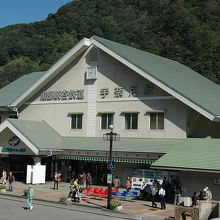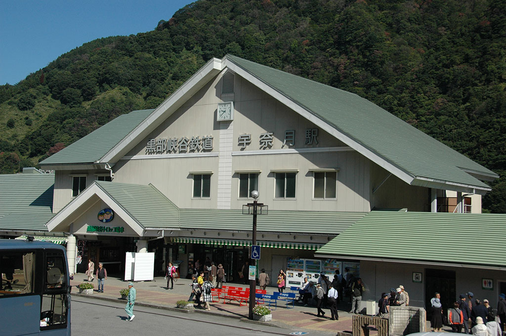 富山電鉄の宇奈月温泉駅から歩いて5分くらい。トロッコ電車の起点になる駅です。さすが観光地なので、それなりに大きなトイレや駐車場があったり、お土産や関連グッズなどもたくさん売っています。夏には改札に地元の中学生の一日車掌さんがいたりしてかわいいです。