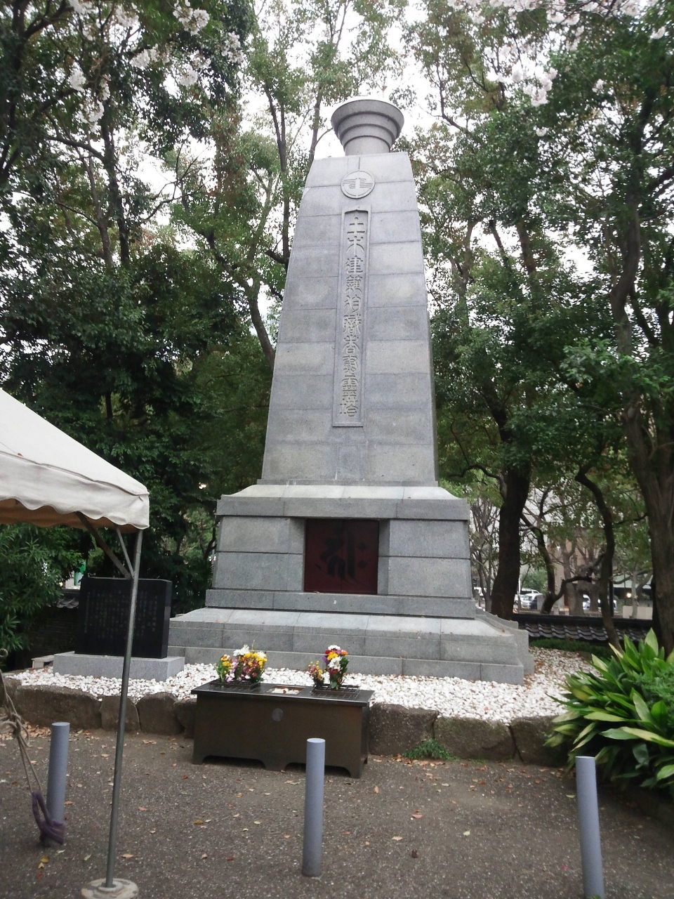 土木建築事業ハ一國文化ノ象徴産業ノ先躯ニシテ厥ノ能ク山岳ヲ貫キ雲閣ヲ築クや固ヨリ険ヲ犯シ危キヲ怖レス斯ノ高業ニ従フモノ洵ニ平和ノ戦士トモ謂フベシ而シテ不幸ソノ職ニ殪レシモノ豈ニ其ノ英霊ヲ祀リ其ノ幽魂ヲ慰メスシテ可ナランヤ茲ニ全國同業者ノ寄進ニ依リ慰霊塔ヲ建立シテ永ク其ノ菩提ヲ弔ハントス、と書かれている