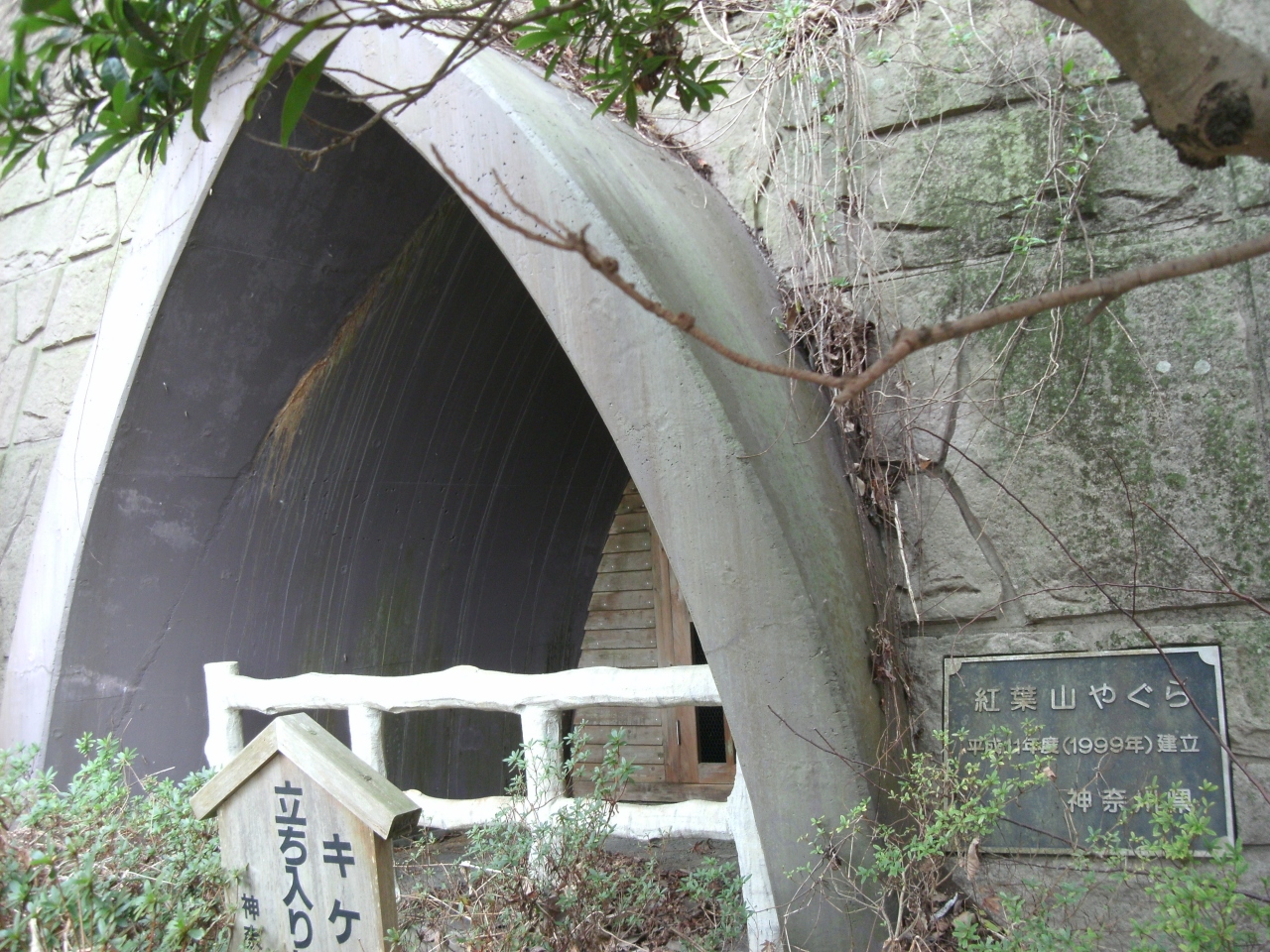 とんでもありません。ここで言うやぐらとは、横穴式の墳墓・供養堂のことです。紅葉山のその場所ですが、宝戒寺の裏手、滑川のほとり。史跡は立入禁止(崖崩れ防止)です。北条得宗家の屋敷跡でもありますが、歴史を思う方でないと何もない・つまらないかも。