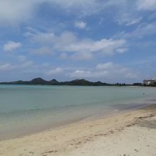 川平湾の裏側にあるビーチ、数人の子供達が水遊びをしていました。弧を描く遠浅の大きいビーチで水の透明度が良く、ものすごく綺麗でした。底地ビーチに面した大きな建物(ホテル)が複数、海水浴シーズンは人でいっぱいになりそう‥。