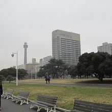 公園には、インド給水塔や、係留された氷川丸などがあり、近くにマリンタワー、グランドホテルもあります。
