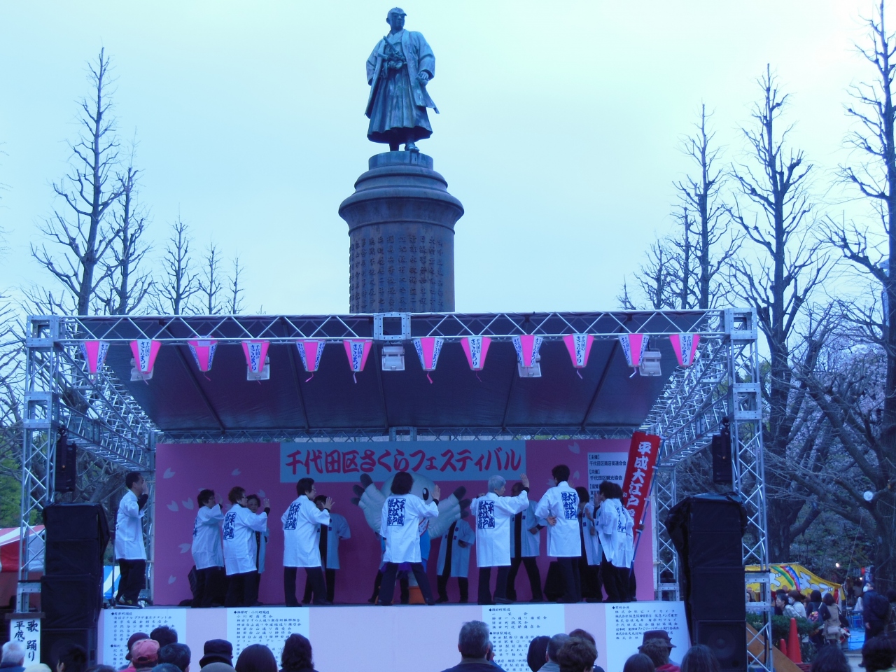 地下鉄九段下駅を出て、日本武道館を左手に見ながら歩いていくと、大きな鳥居のある靖国神社が見えます。今日は千代田のさくらまつりがあり、たくさんの露店が出ていてとてもにぎやかでした。東北や北陸各県の名産物を食べる事も出来ました。