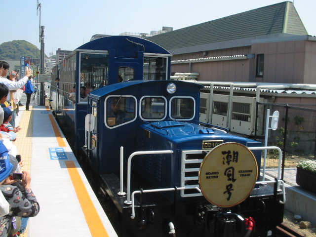 門司港駅前を発車して、関門海峡が見渡せる、関門海峡めかり駅までを結ぶトロッコ列車。旧貨物線を走っている。