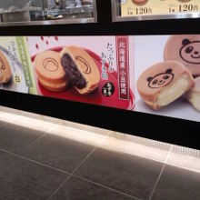 大判焼きのお店で、ひよこマークの白あん、粒あんとパンダマークのカスタード味の3種類です。