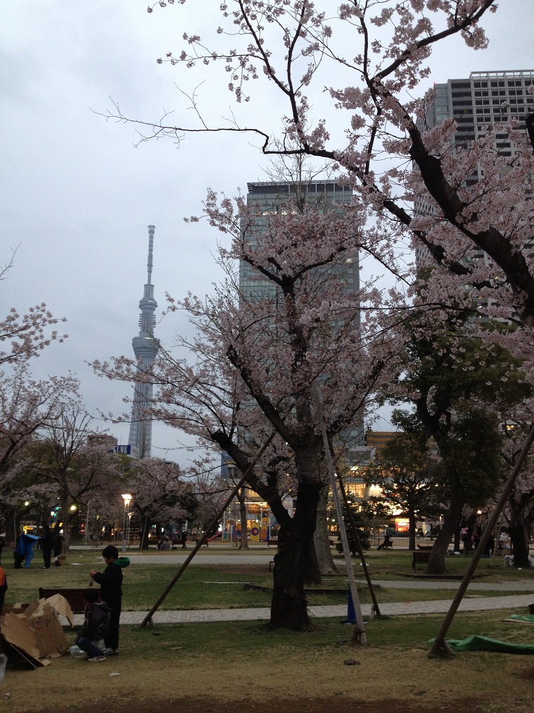 以前から桜の花見で有名な場所でしたが、一昨年からはスカイツリーが徒歩圏内にオープン。ますます人が集まるようになったようです。公園からはスカイツリーを眺めることができ、夜景も雰囲気のあるものになりました。