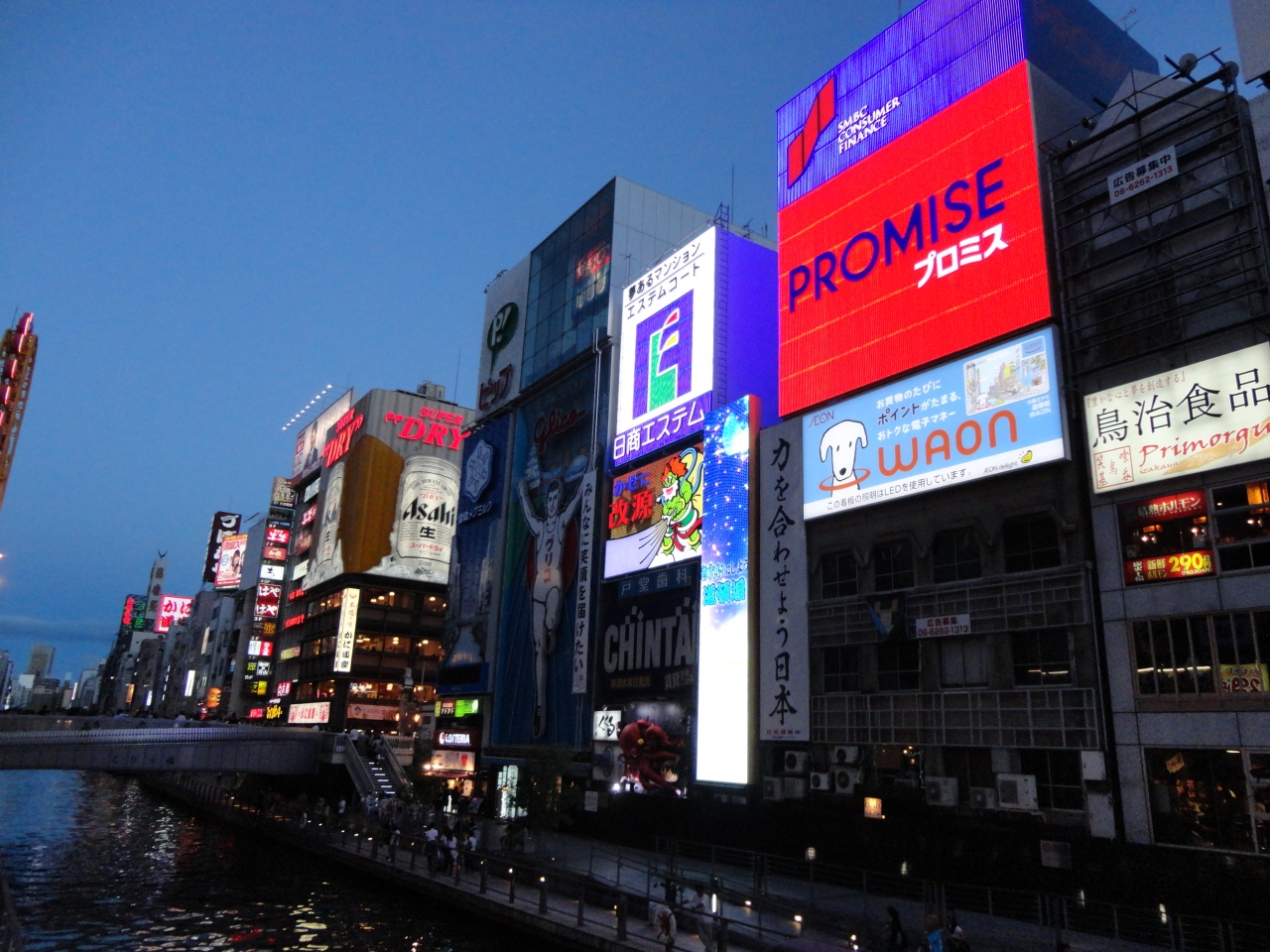 ここは昼間眺めがとても良く大阪の雰囲気が味わえますが、特に夕暮れ時からだんだんあちらこちらのネオンが綺麗に見え始めるころが私は好きです。真っ暗でもなく、かといって明るすぎず、遠くまで見渡せるからです。川のそばに降りていくのもいいですね。