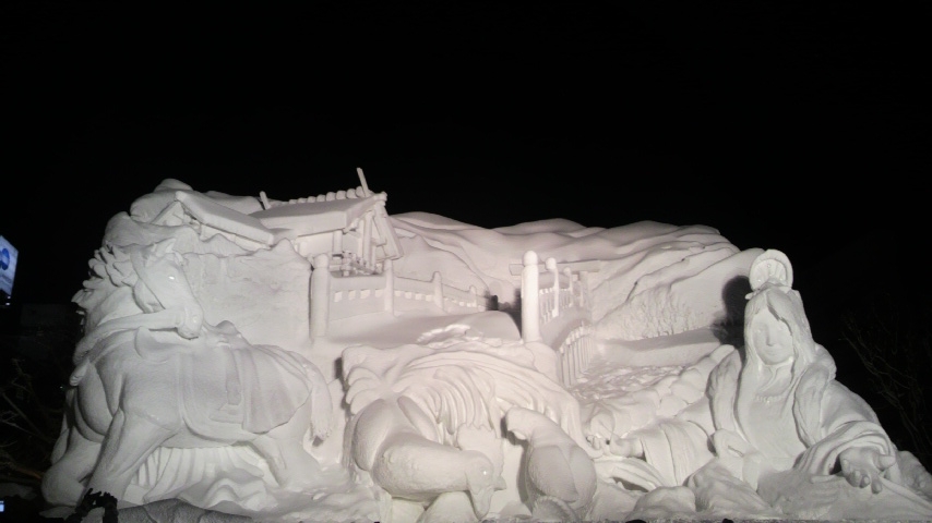 雪が降ると雪像の上に積もり像が見づらくなります。