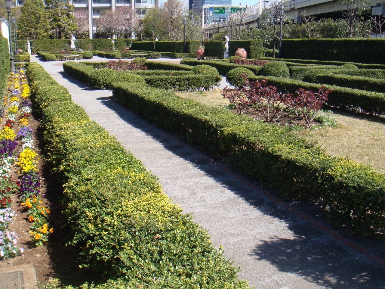 イタリアのことはよくわかりませんが、この公園はトスカーナルネサンス様式、なのだそうです。刈り込みして造りこまれた庭園に、彫像がいくつも飾られています。オフィス街なので昼休みなどは休憩する方がいらっしゃるのだと思いますが、それ以外の時間は閑散としており、のんびりできる穴場だと思います。
