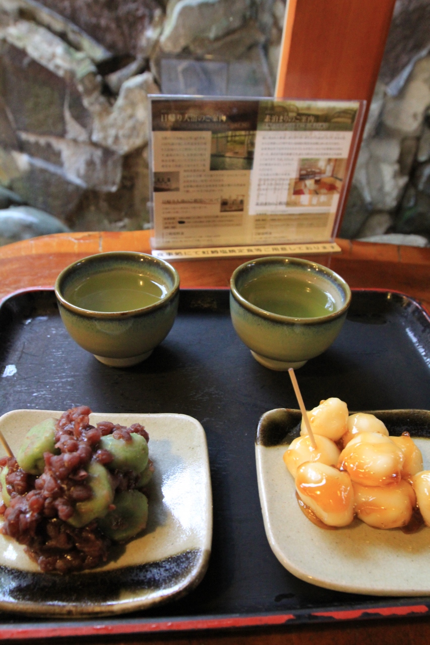 龍頭の滝を正面から見られる観瀑台がある龍頭之茶屋を訪れました。付近は龍頭の滝目当ての観光客が多く朝早くから駐車場は満車でした。紅葉の時期は付近に臨時駐車場が設置されているので少し待つ程度で問題ありませんでした。龍頭之茶屋では龍頭の滝を眺めながら食べるみたらし団子とおぐら団子が名物で私達ものんびり滝を眺めながらいただきました。駐車場から近い場所にあるため少し時間が空いた時でも立ち寄れる名所です。