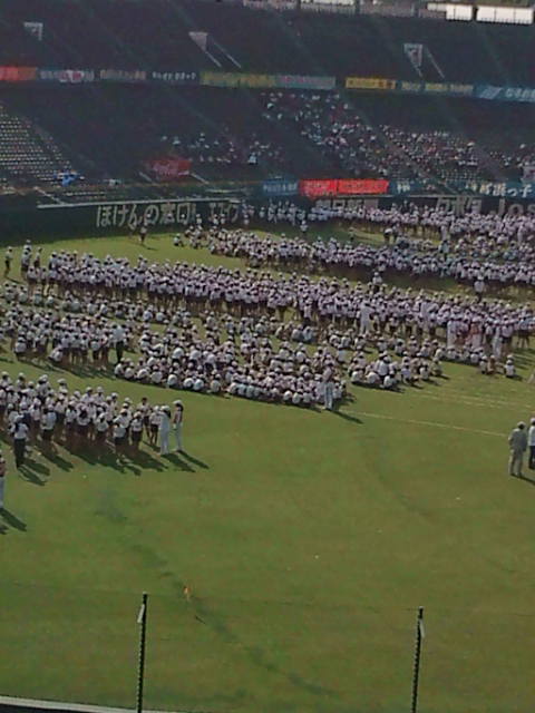 阪神ファン、高校野球ファンはいうまでもありませんが、西宮市の小6と中学生はここで体育会もします。市民の特権でしょうか。約4000人の中からわが子を探すの大変ですが、甲子園球場はそんなことにも使われています。観覧席ではわからなかったグラウンドの芝の香り、土の感触など、目をキラキラさせて話してくれます。