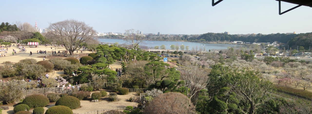 偕楽園から千波湖まで見渡せる3階からの眺めは素晴らしかったですが、「写真を撮ったら移動してください」とのアナウンスが流れ、ゆっくり眺めていられないのが残念でした。