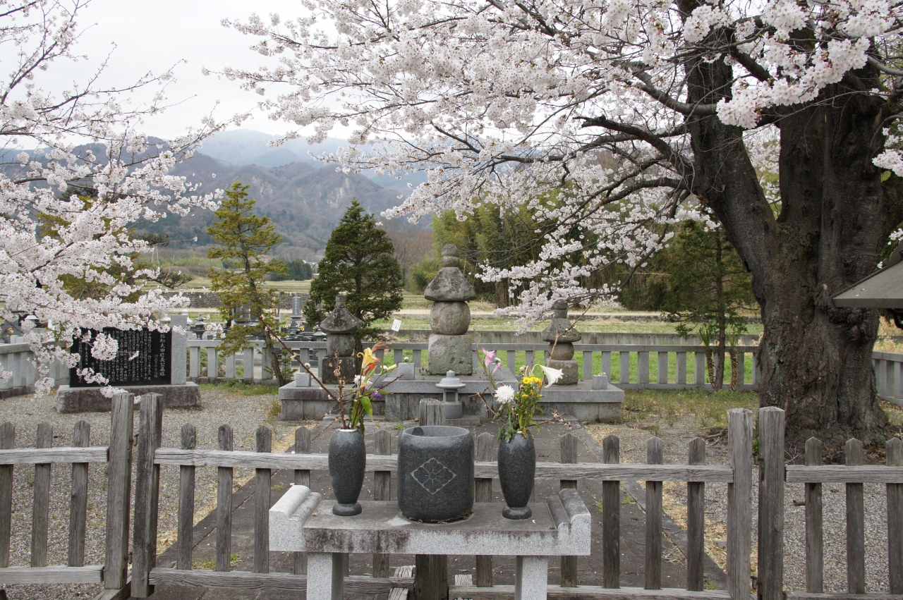 墓は、願成寺の境内の一角。立派な桜の下にありました。