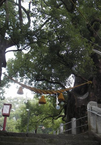 山王神社の境内入口にそびえる2本のクスノキは、樹齢約5~600年、胸高幹囲がそれぞれ8メートルと6メートルで、長崎市内にあるクスノキの巨樹の一つです。