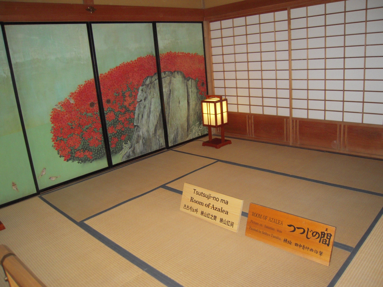 徳川斉昭の慰安会用とのことだが、ふすまの絵が、部屋ごとに花が描かれており素晴らしかった。