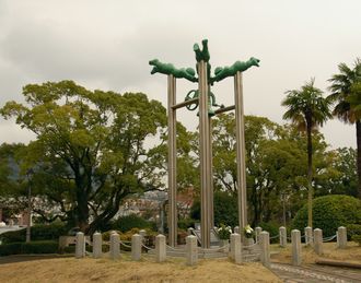 右手は原爆を、左手は平和を、表情は追悼の意を表しているという。