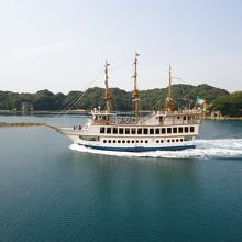 西海国立公園九十九島の玄関口にある「西海パールシーリゾート」を発着する遊覧船パールクィーンは、白い帆船風の遊覧船です。