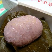 ほのかな桜色に染めたもち米で、こし餡を包んであります。