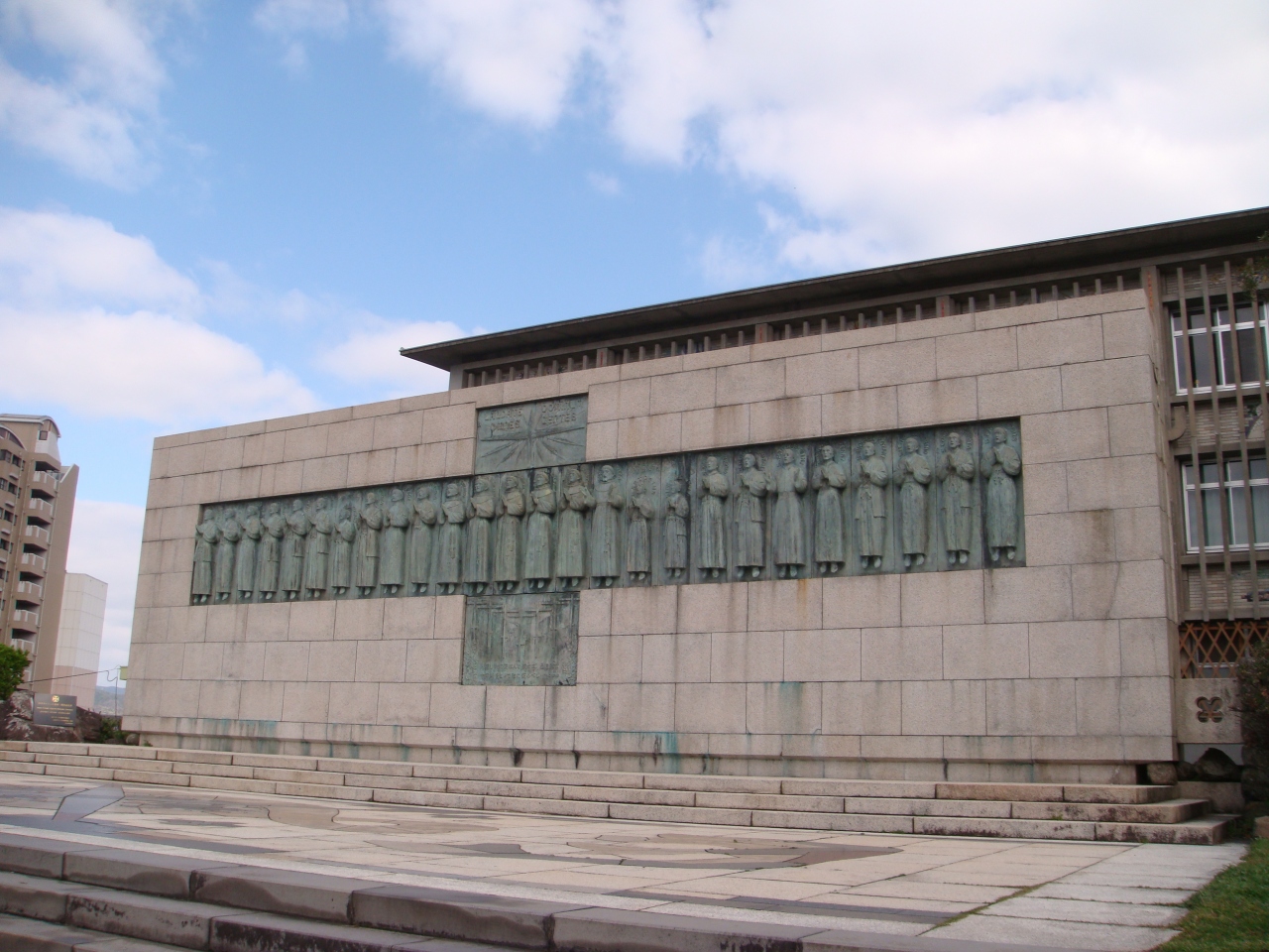 長崎市街を見下ろす西坂公園に日本二十六聖人殉教碑が建っています。