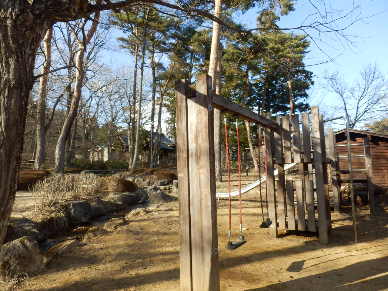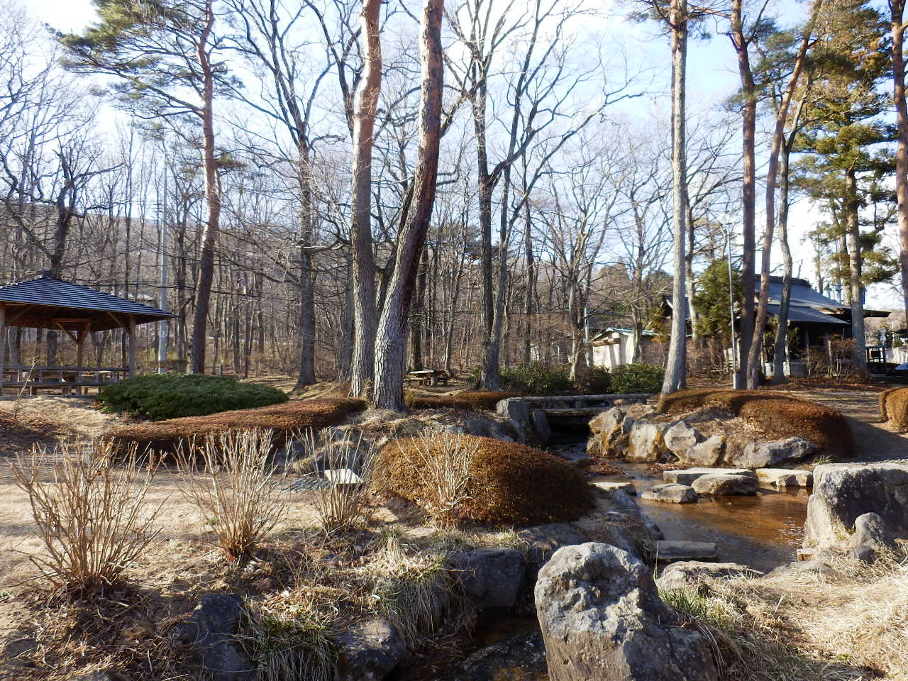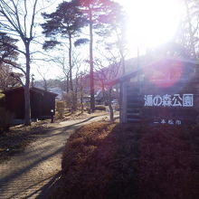 岳温泉の温泉街の坂道を登ると、坂道の頂上地点に温泉神社がありますが、その温泉神社の右手に広がっているのがこちらの湯の森公園です。神社裏手の林を整備した感じで緑が多く、子供も遊べる遊具もあります。岳温泉ではウォーキングを推奨しているので、温泉街の坂道を登り、こちらの公園でひと休憩するのが良いと思います。