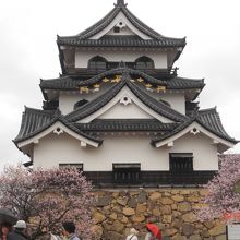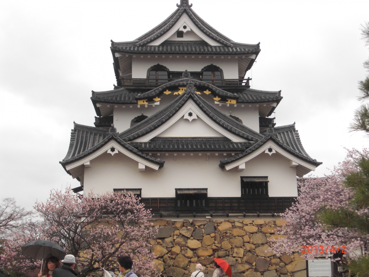 彦根城は、狭い階段で段差がかなりあります。手すりがついているので持って上がり降りしたほうが安全です。桜は5分咲き位です。満開になったらすばらしいと思います。彦根城キャスルロードにはお土産屋さんがたくさんあります。