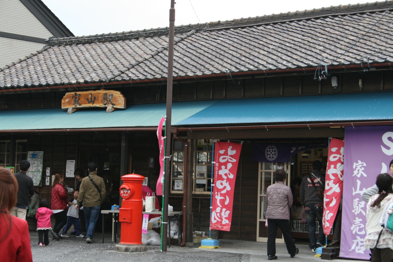 改札を出るとお茶のサービスがあり、お弁当、しいたけ、他、特産品の野菜が売られていました。