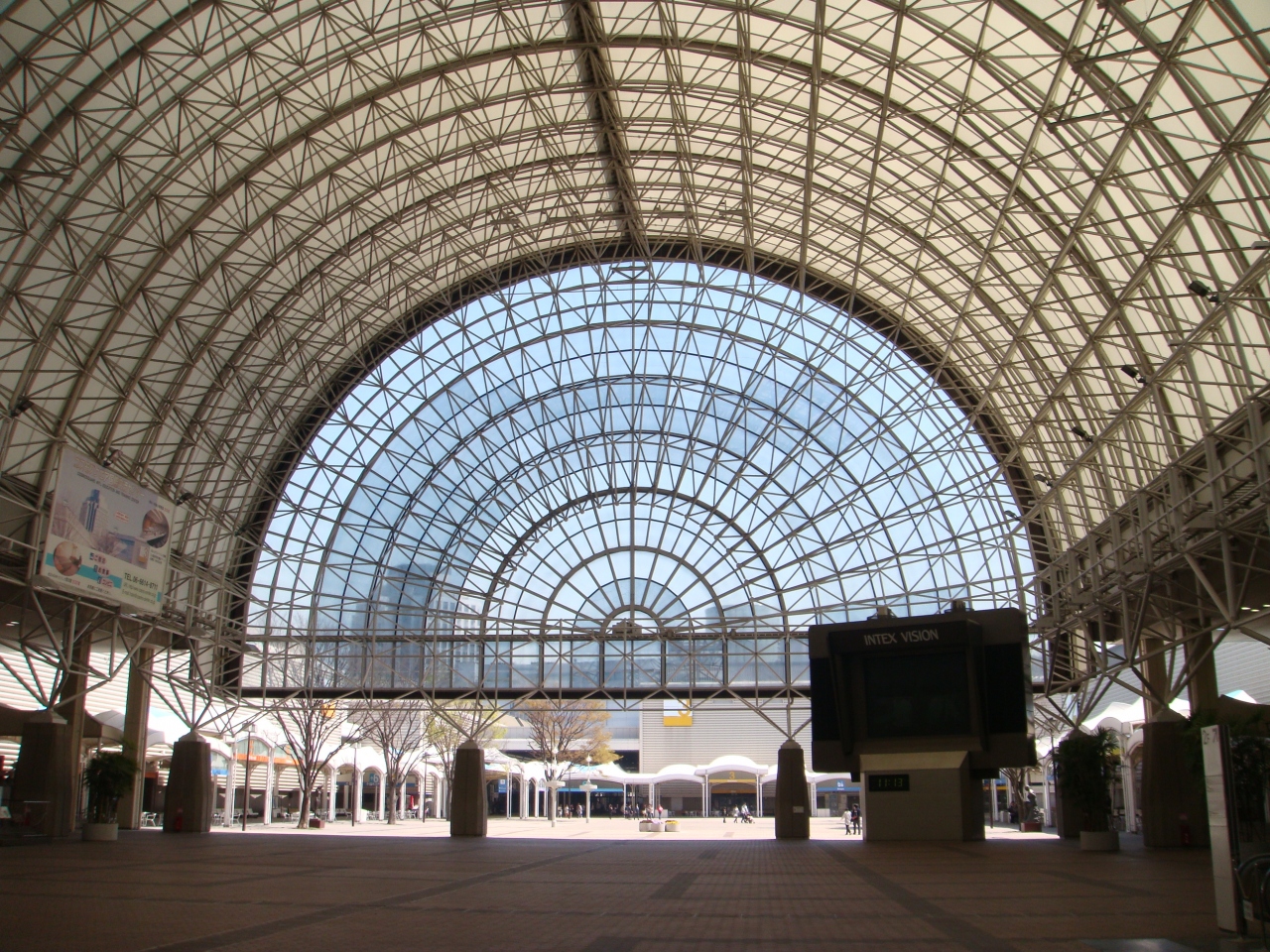 中央のインテックスプラザはドーム状の屋根空間で、圧巻です。