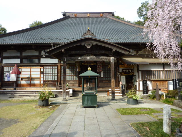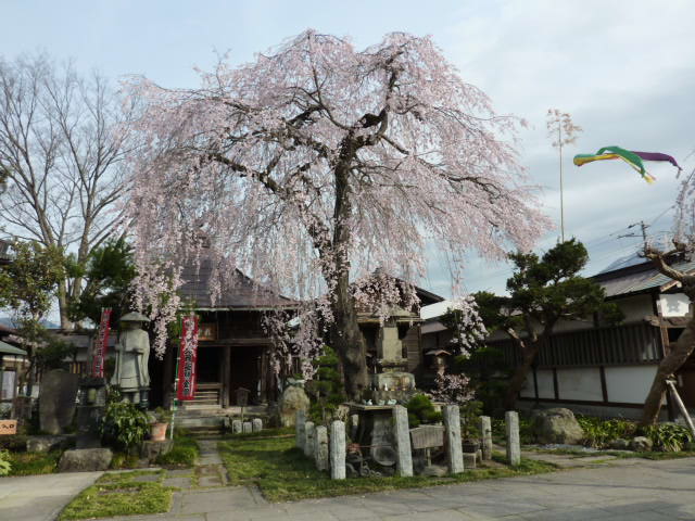 寺の前や境内には枝垂桜が植えてあり、春は綺麗です。