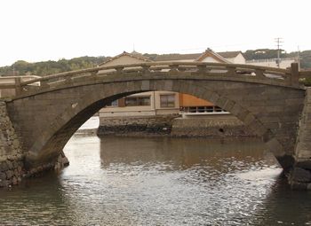 戸港にそそぐ鏡川に架かるアーチ形の石橋。オランダ商館建築に携わった石工の技術で架けられたため、通称オランダ橋と呼ばれています。