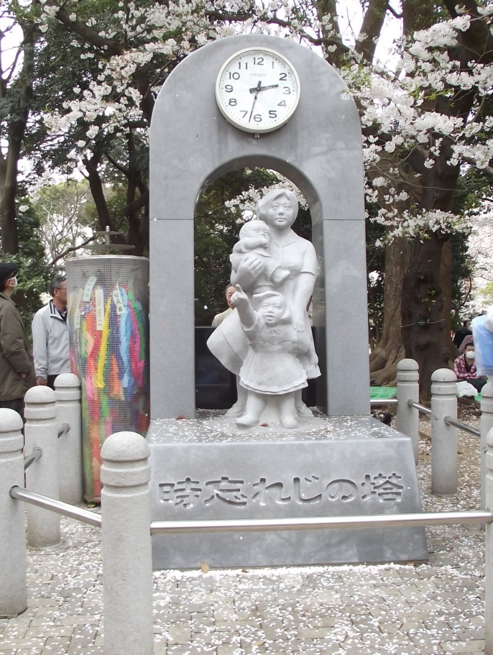 昭和20年3月の東京大空襲を忘れないために、落語家の故林家三平師匠の未亡人でエッセイスト海老名香葉子さんが建立したものです。