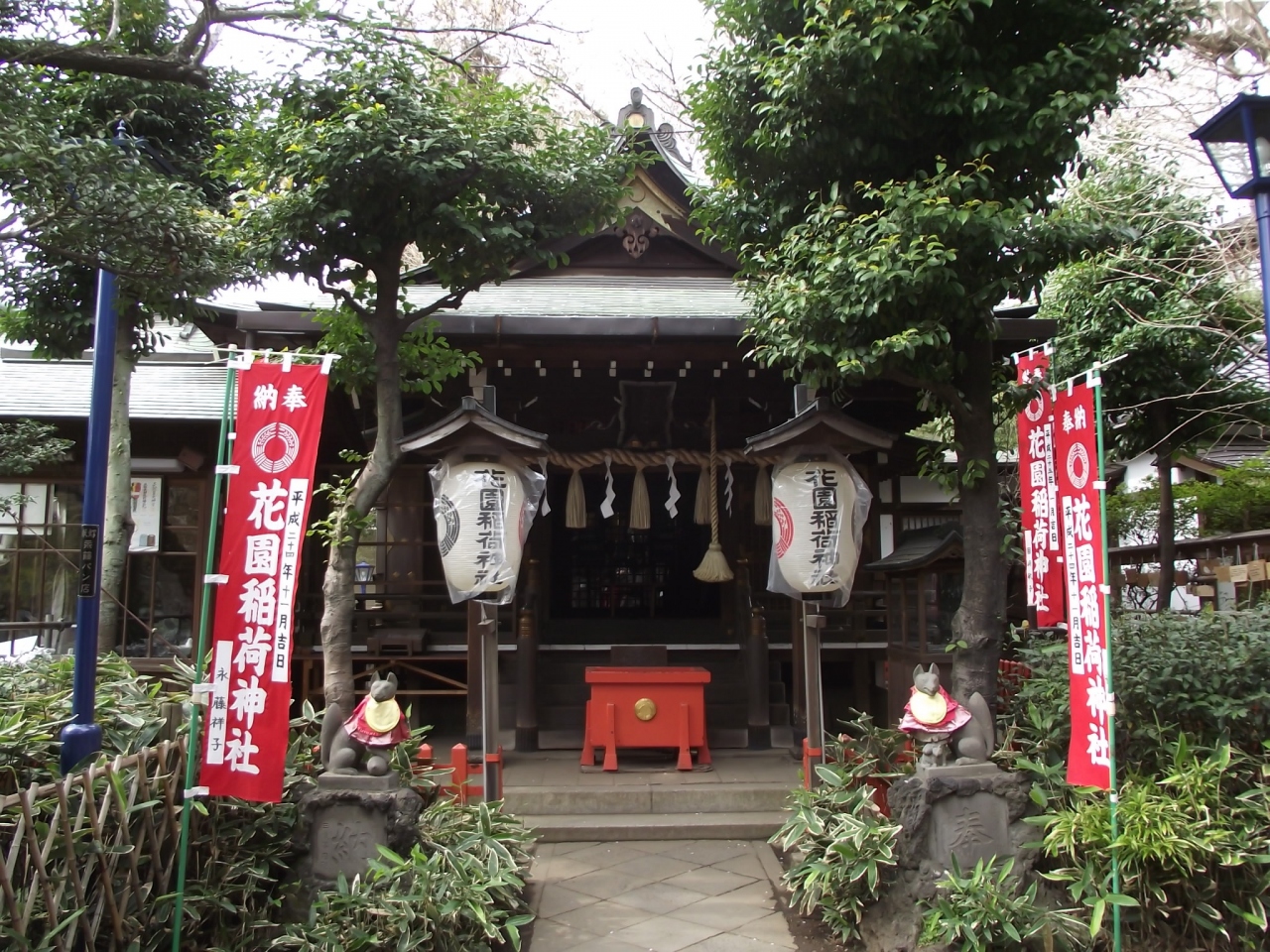 - 赤い鳥居の参道は無理だが正面からは行けます