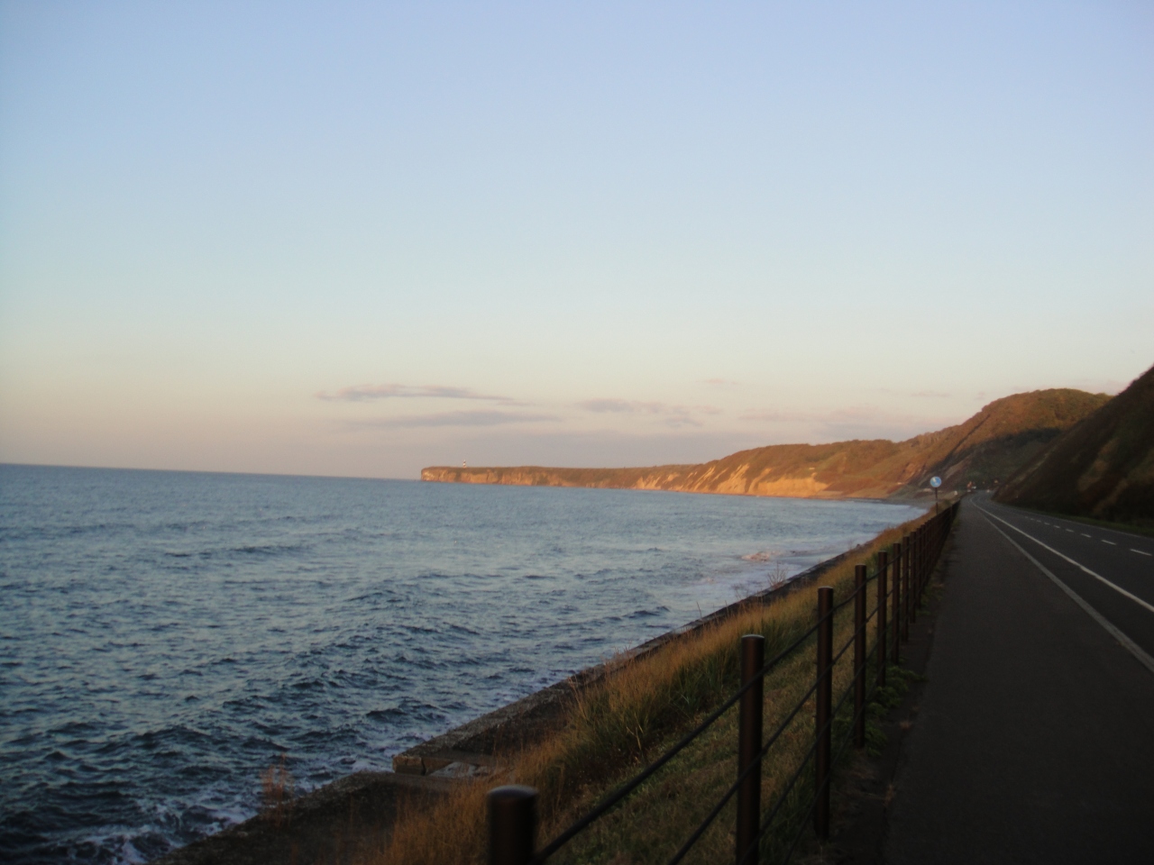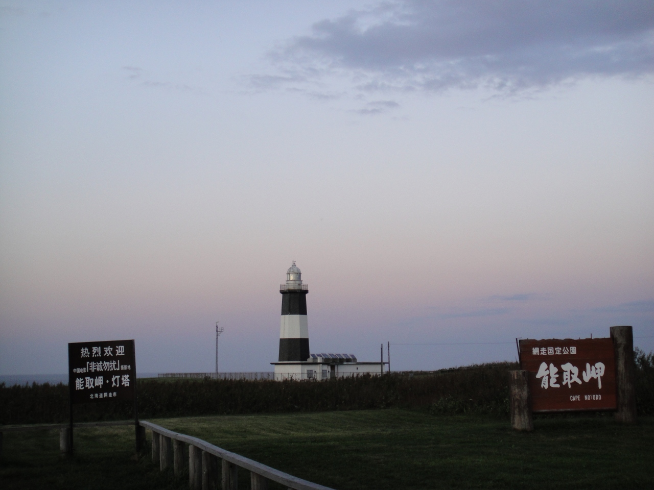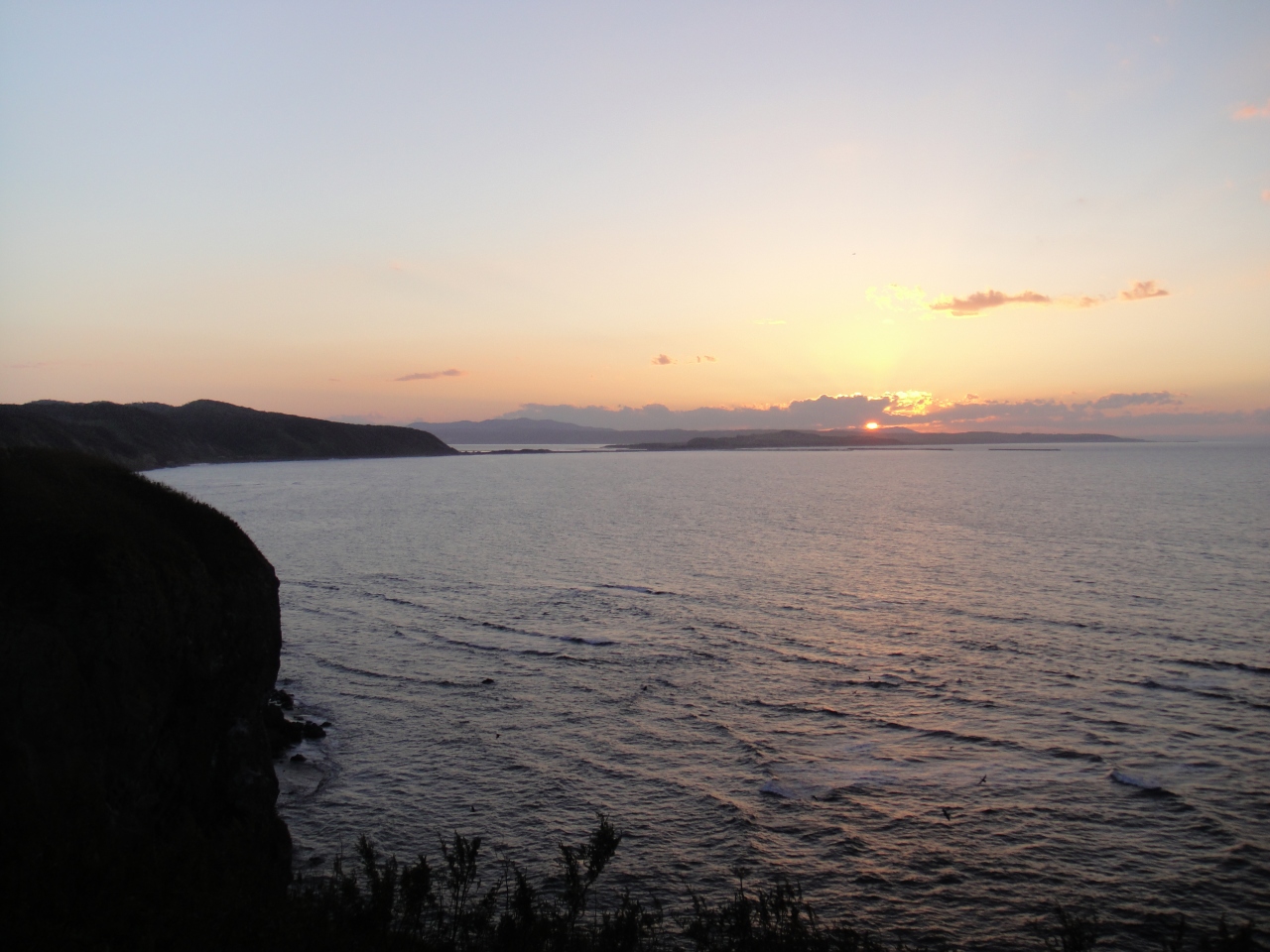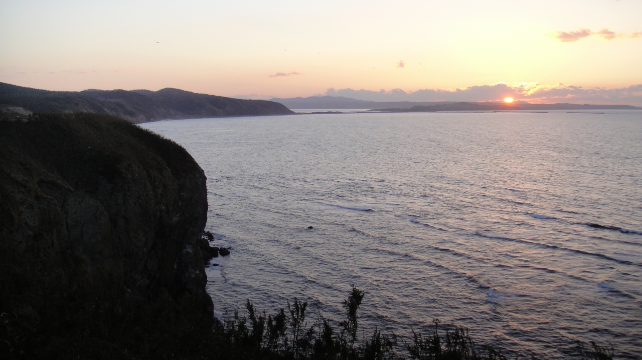 夕陽の能取岬に行きました。岬は網走市街地から8~10kmほど離れています。岬は高台からオホーツク海を見渡すような感じで比較的高度があります。岬までは森の中の長い登り坂を登ることになります。遠く能取湖方面の丘に沈む夕陽が見えました。夕陽もよいですが、きっと流氷が訪れると展望が利くのできれいだろうなと思いました。