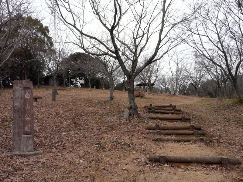 桜が植えられた公園には、八幡社の小さな御社があります。さらに東へと登ってゆくと、白山神社があり、手前には展望台があります。