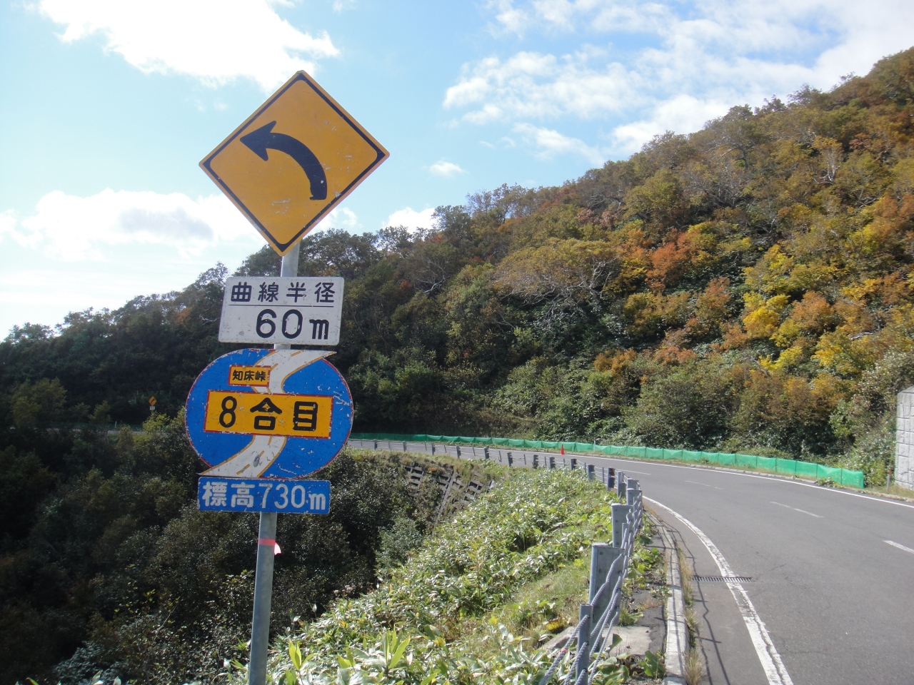 自転車で知床峠を越えてみました。朝、ウトロのホテルを出て、まずプユニ岬のところで50mくらい?の高さを登ります。さらに知床自然センターの横を五湖方面に曲がらず直進します。そこからしばらくすると、ずっと登りが続きます。知床峠の標高は約800mです。海抜0mから上ることになります。きついですが、峠では車やバスなどと違う充実感が得られます。10月に初旬に行き、紅葉が落ちかけでしたが雄大な羅臼岳とはるかに国後島を望むことができました。羅臼側に下りましたが、急な傾斜が続きました。まだ、ウトロ側から登る方が楽なのかなと思いました。