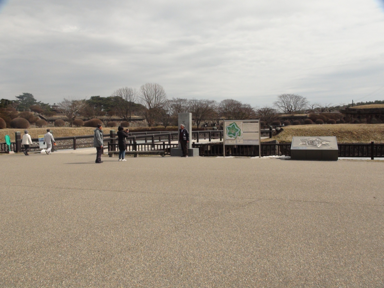 ツアーで50分、公園内を回ってタワーにあがって丁度いい時間ですね。園内の道路は雪がなく歩きやすいです。富士や桜の季節なら最高だろうけど、凍った堀もなかなかのもの。貸しボート屋があるようですが3月末で閉まっていました。