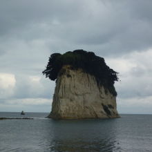 正面から見ると軍艦に似ていることから、別名「軍艦島」と呼ばれているそうです。高さは28メートルあるようで、近くから見るとかなり大きいです。天気が良ければ白い岩肌が青空に映えて美しいようですが、私が訪れた時はあいにくの曇り空だったのが残念でした。