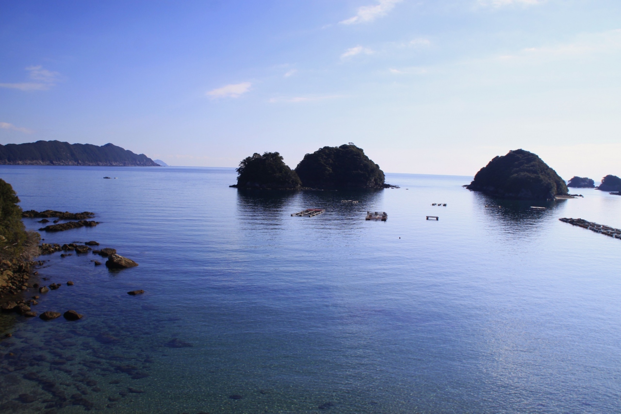 コバルトブルーの透きとおる美しい海と海岸近くに浮かぶ島が織りなす絶景で、展望台や観光スポットが特にあるわけではありませんが、晴天時には素晴らしい景観が楽しめます。ドライブで立ち寄りにはちょうどいいかも。