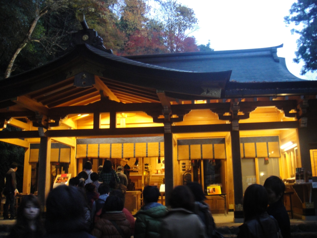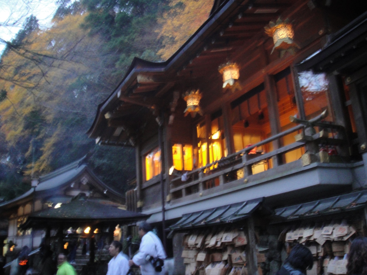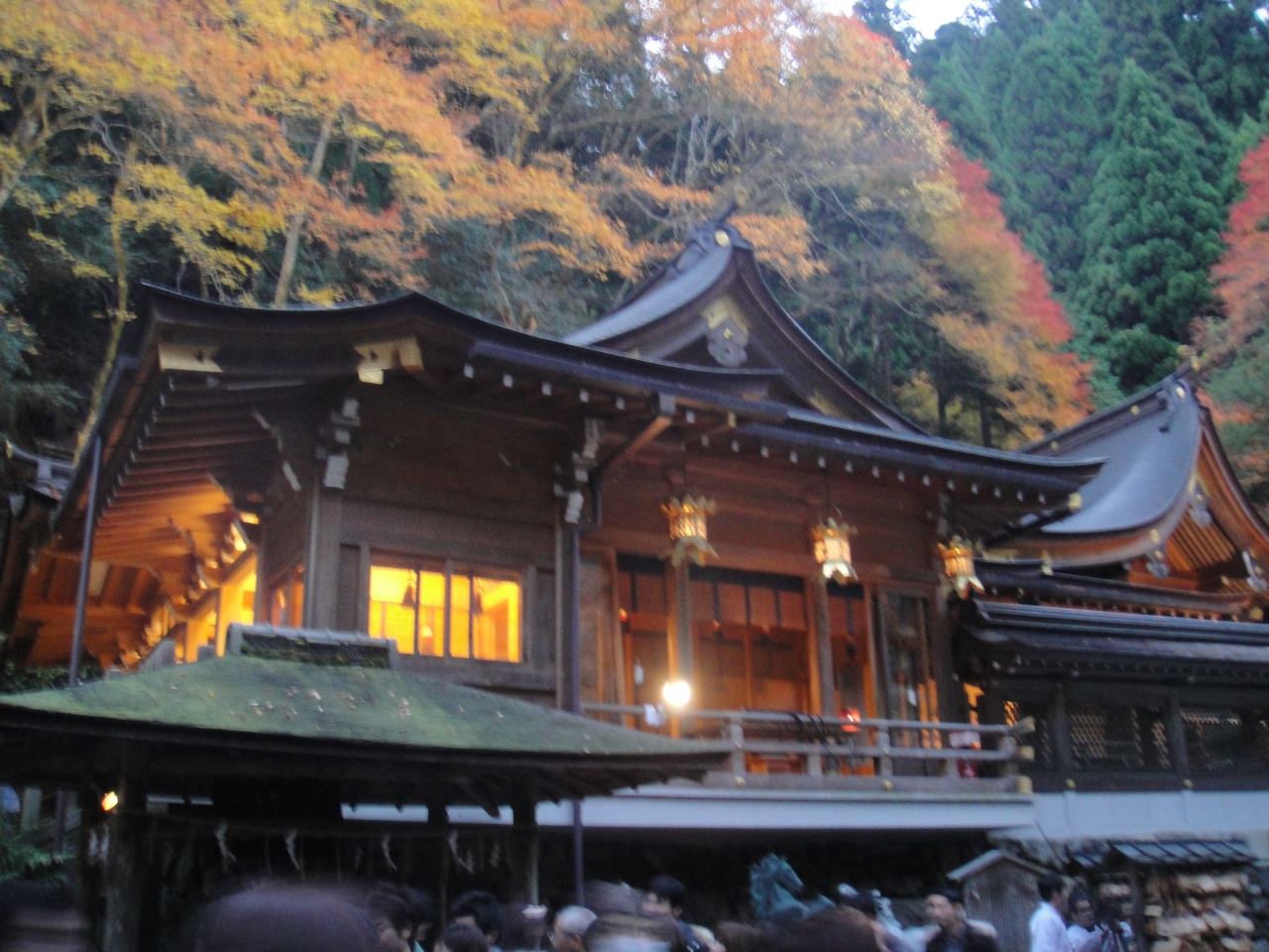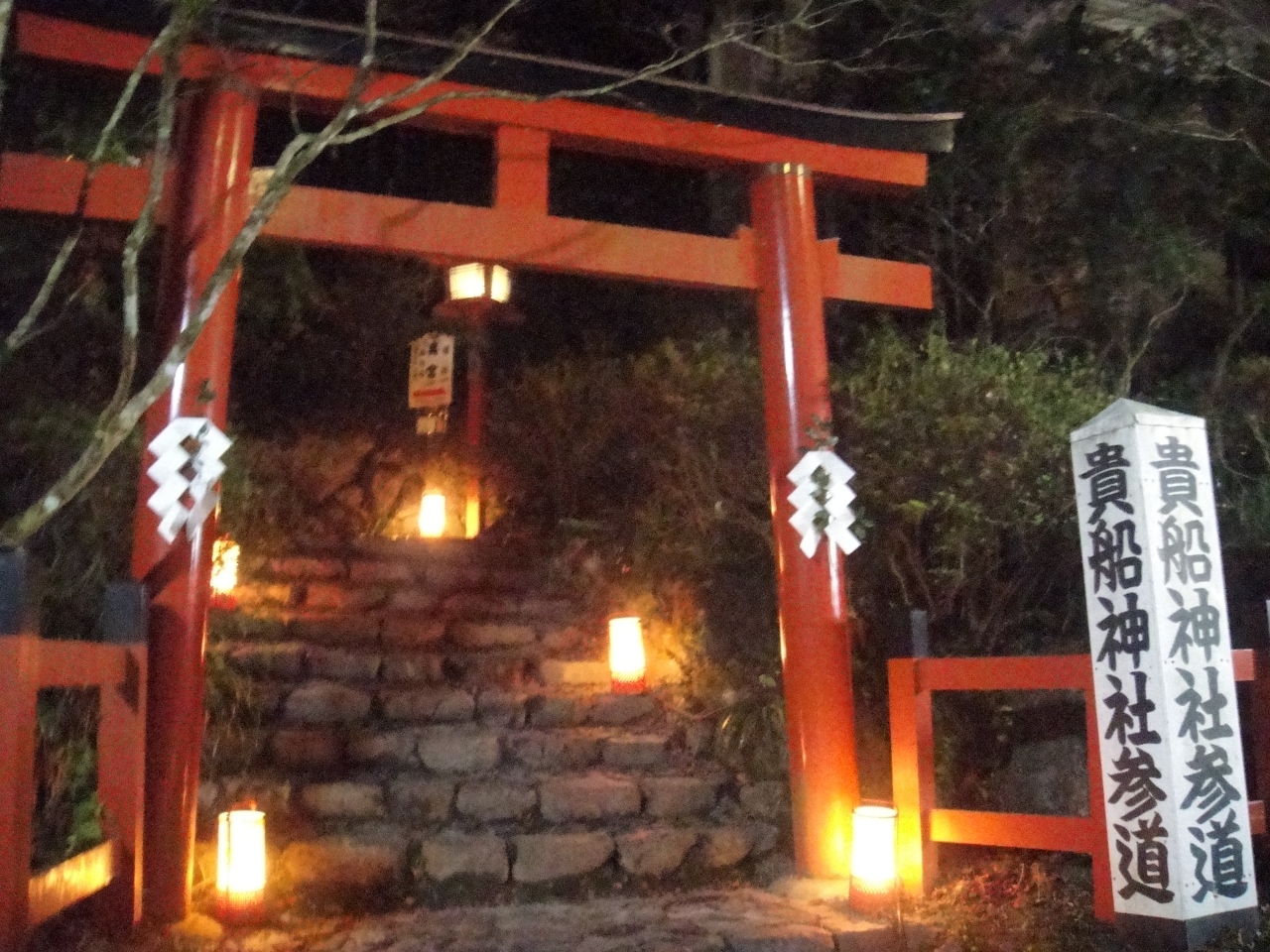 鞍馬山の帰りに貴船神社に寄りました。秋の紅葉に併せていきました。さすが山の中です。街中に比べ、結構気温が低かったです。休日に合わせて奉納ミニライブなどの催し物もやっていたため、かなりの人混みでした。縁結びのご利益というだけあり、女性の参拝客がかなり多かったと思います。貴船口の駅、本宮、奥宮の間の道は結構細い割りに(1車線?)観光シーズンだったため、交通量も多いです。また駅から本宮まで約2kmと距離の坂道を登ることになるので時間には相当余裕を持った方がよいです。