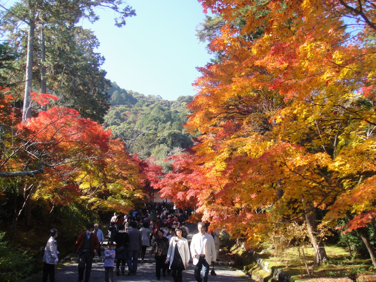 紅葉が見事です。嵐山エリアにあり、隣接する常寂光寺や化野念仏寺、天龍寺、渡月橋など一挙に回ると大変です。ましてや人混みの中です。ゆっくり観賞するためにも2日に分けて回りました。山の東斜面にあるため午前中に巡るときれいです。