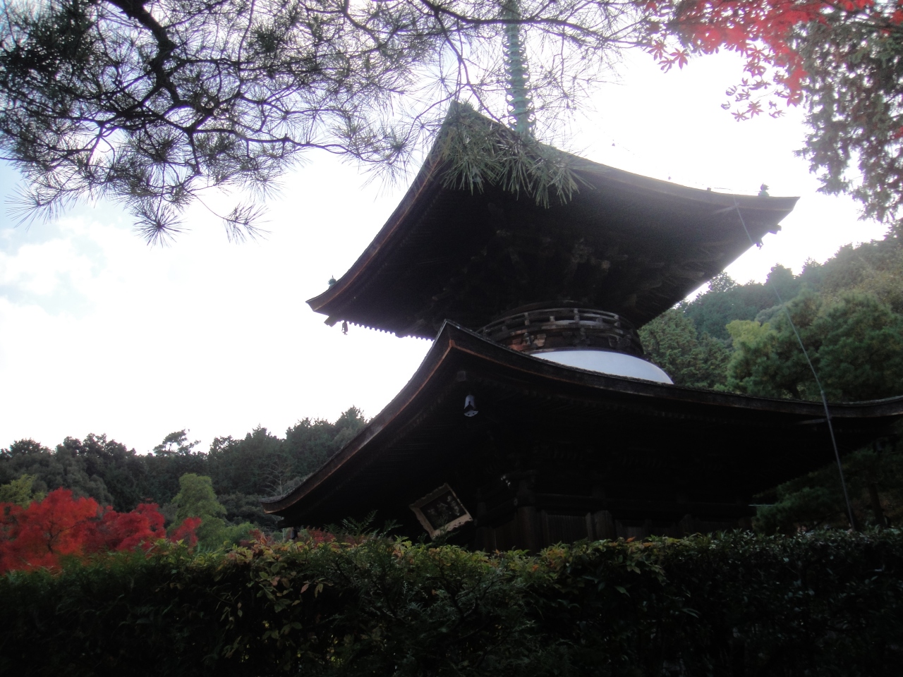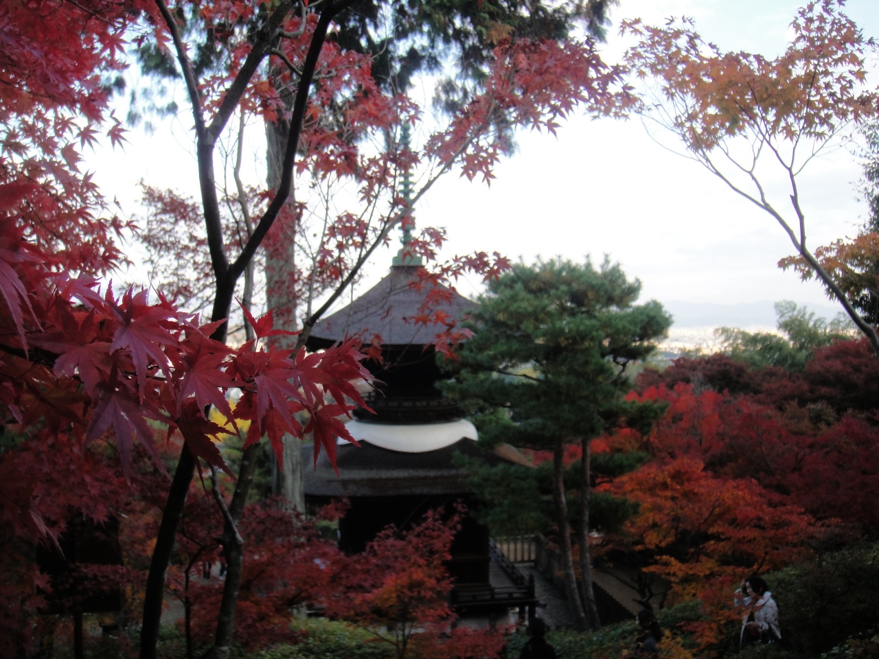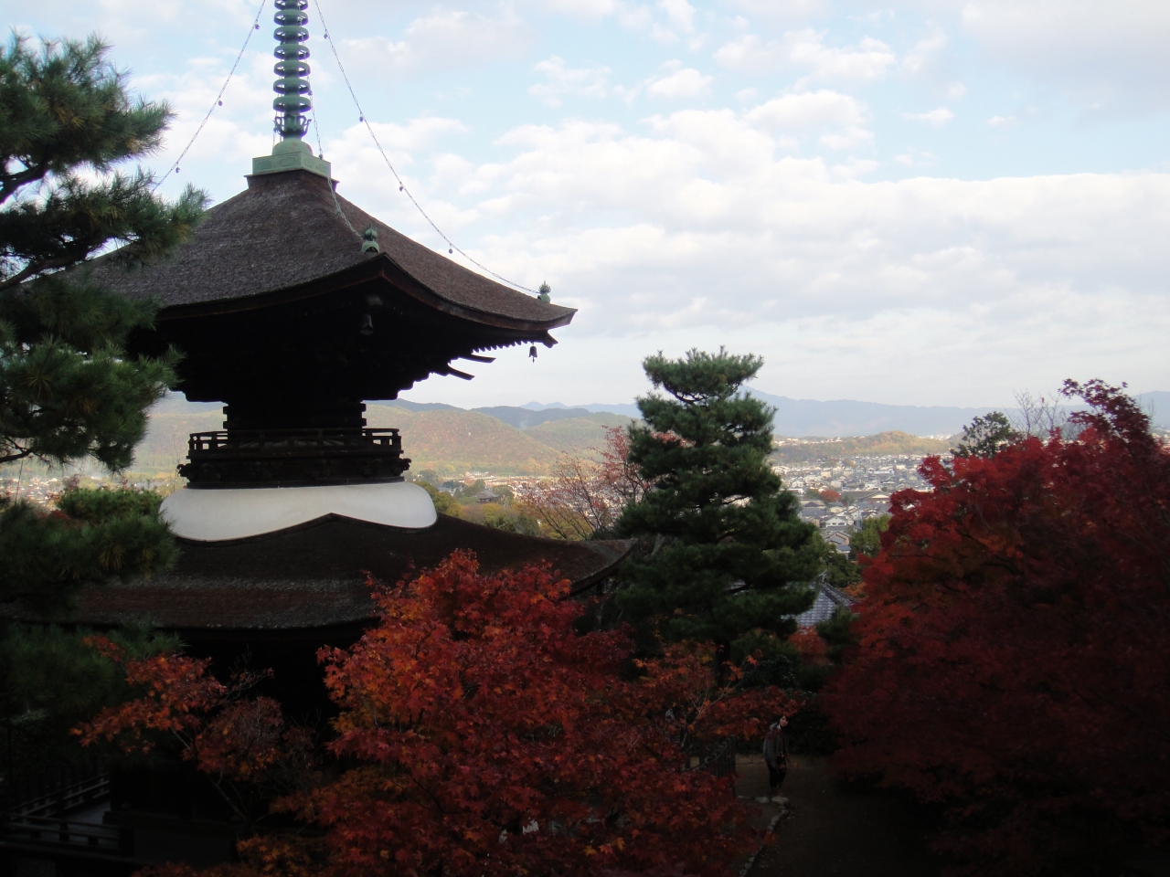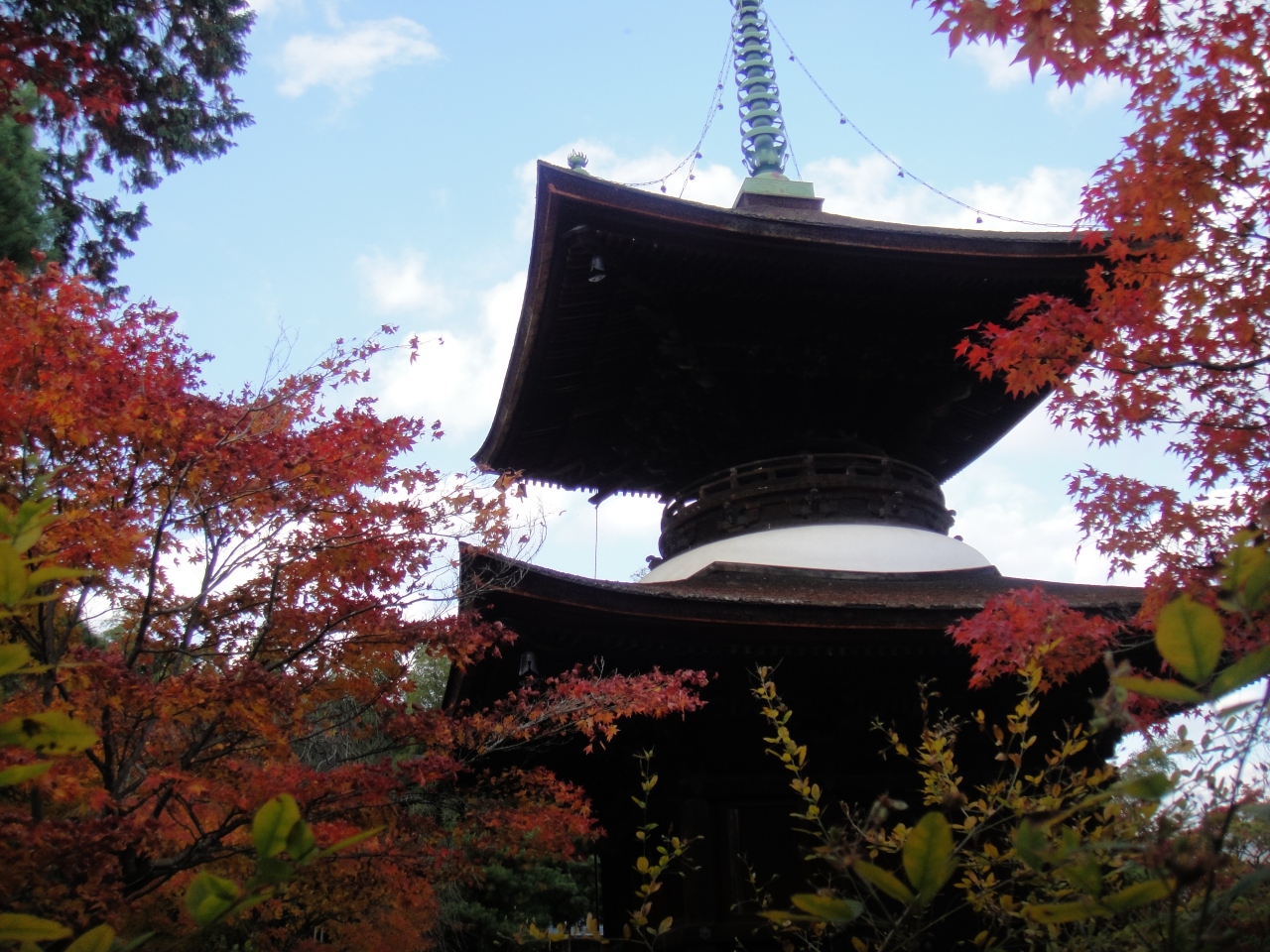 常寂光寺の裏手にあります。寺は本殿まででも石段を2~30段上りますが、多宝塔を眺めるには裏山に上がるため、更に上ることになります。しかしそこからは京都市内が一望のもと見渡せます。紅葉の時期にいきました。赤につつまれた多宝塔が見事でした。